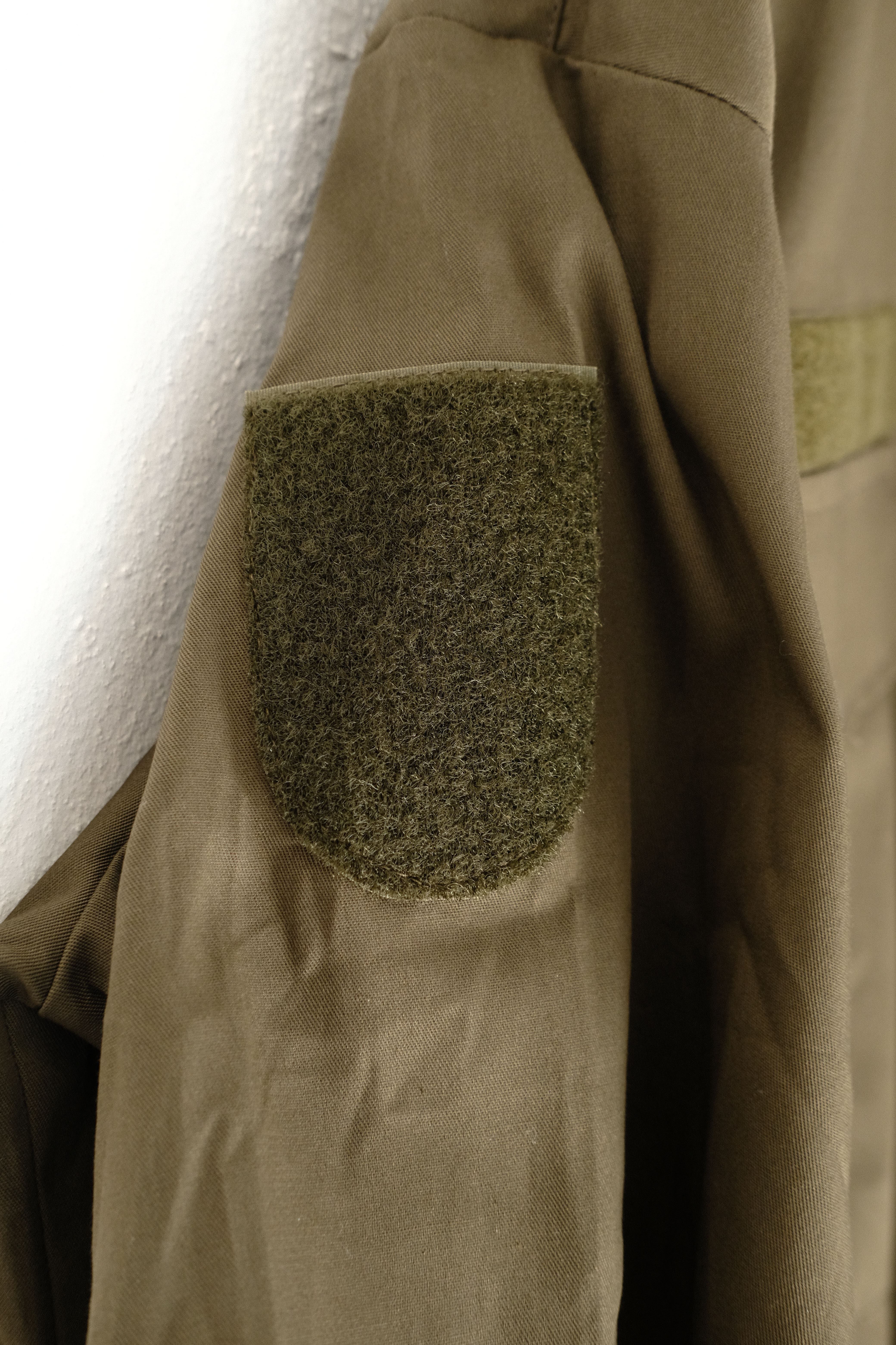 ボタン開閉の2箇所のフラップポケットのフロント中央には階級章などを取り付けるためのループがあります。パッチもしっかり入っており、ミリタリー感が出ています。