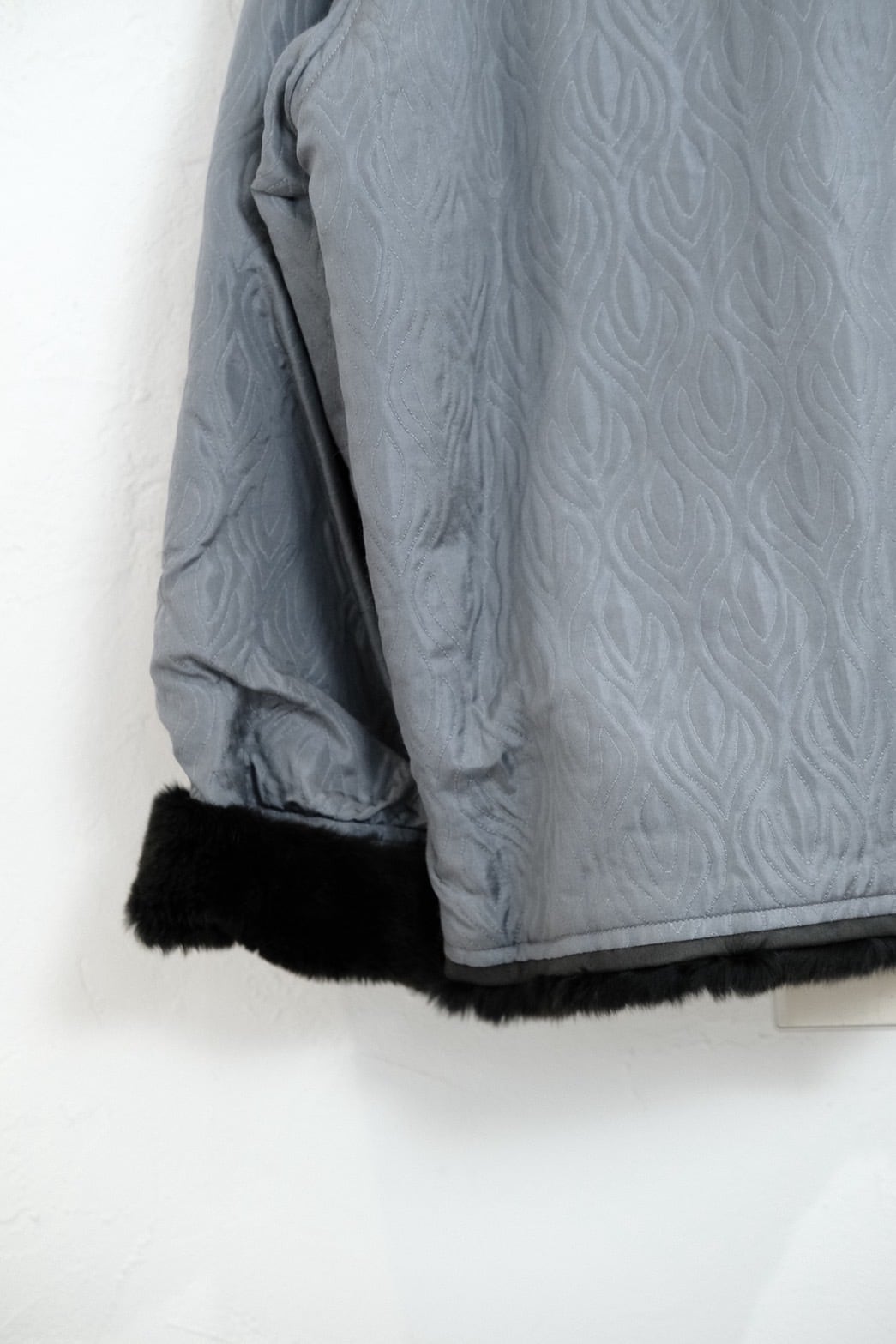 表地はシルクとポリエステルの合繊生地、裏地は全面ファーです。