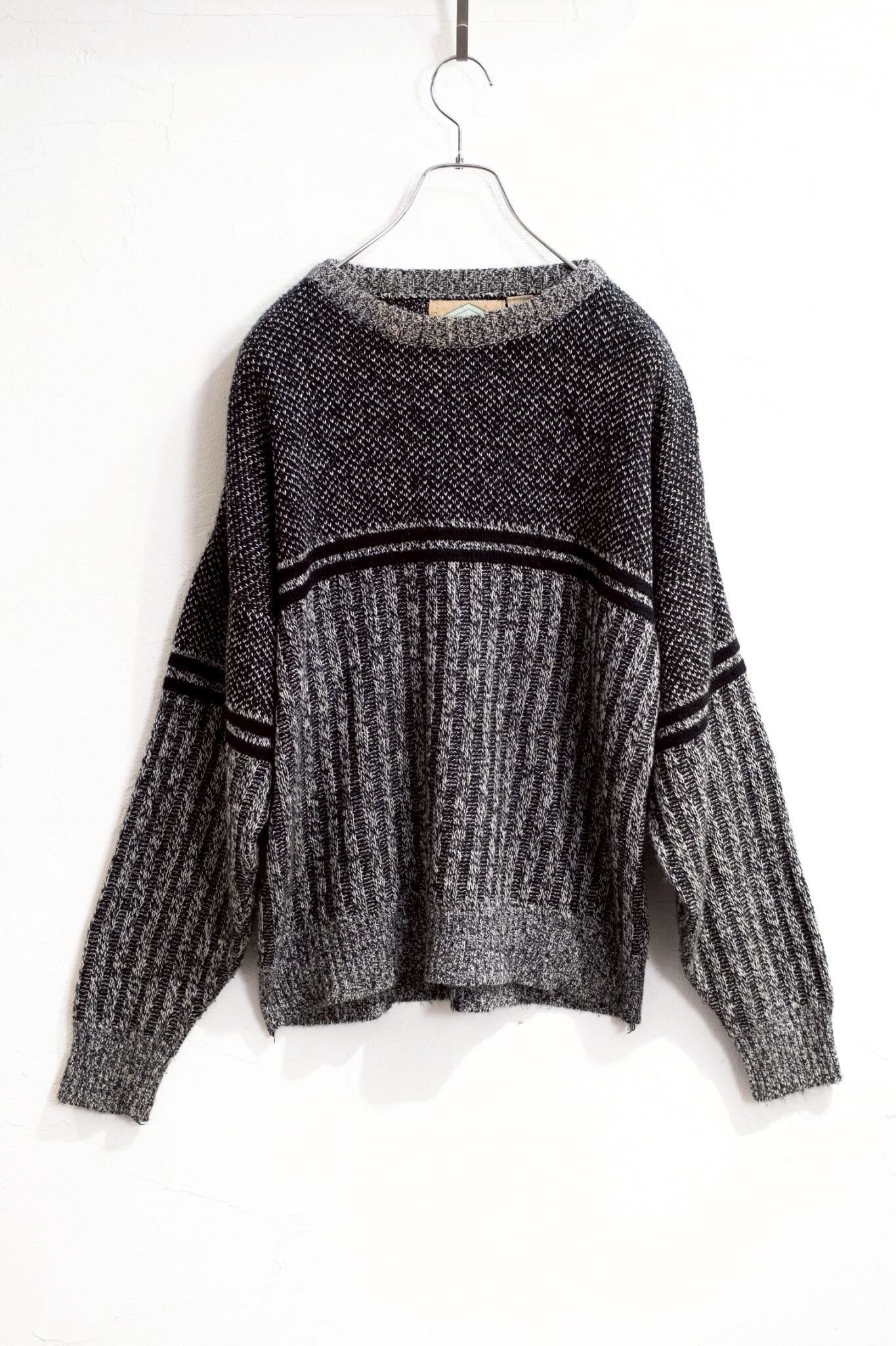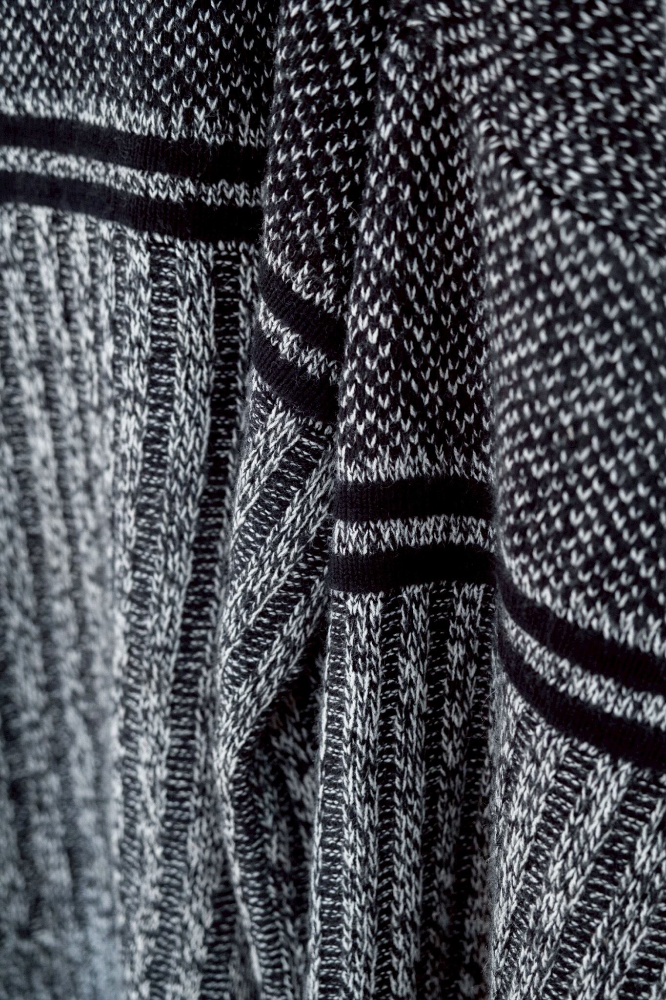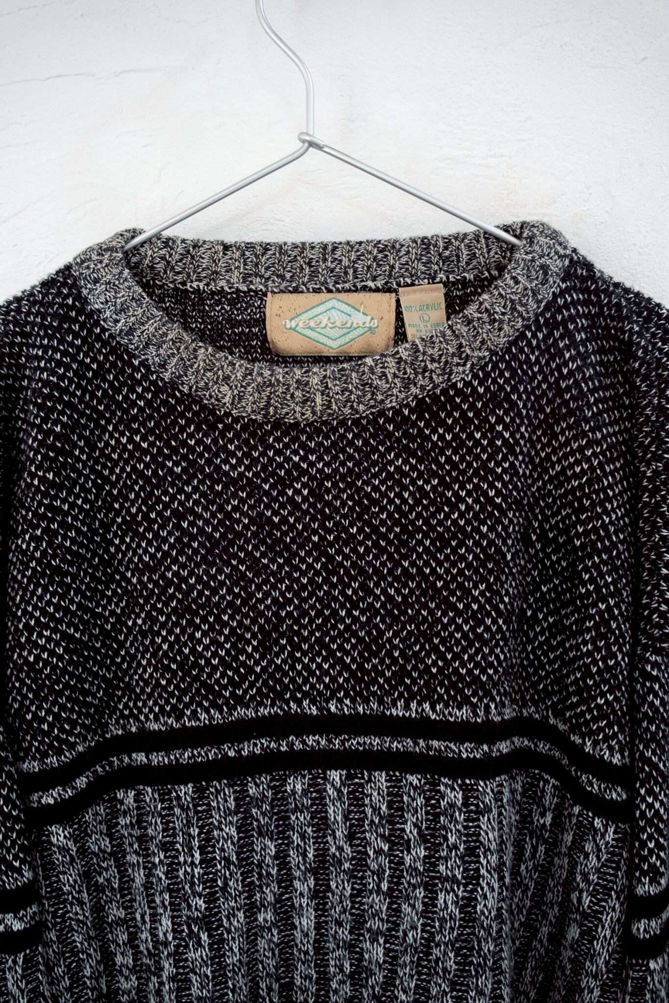 : weekendo : ハイゲージ千鳥ストライプ柄 丸首ニット