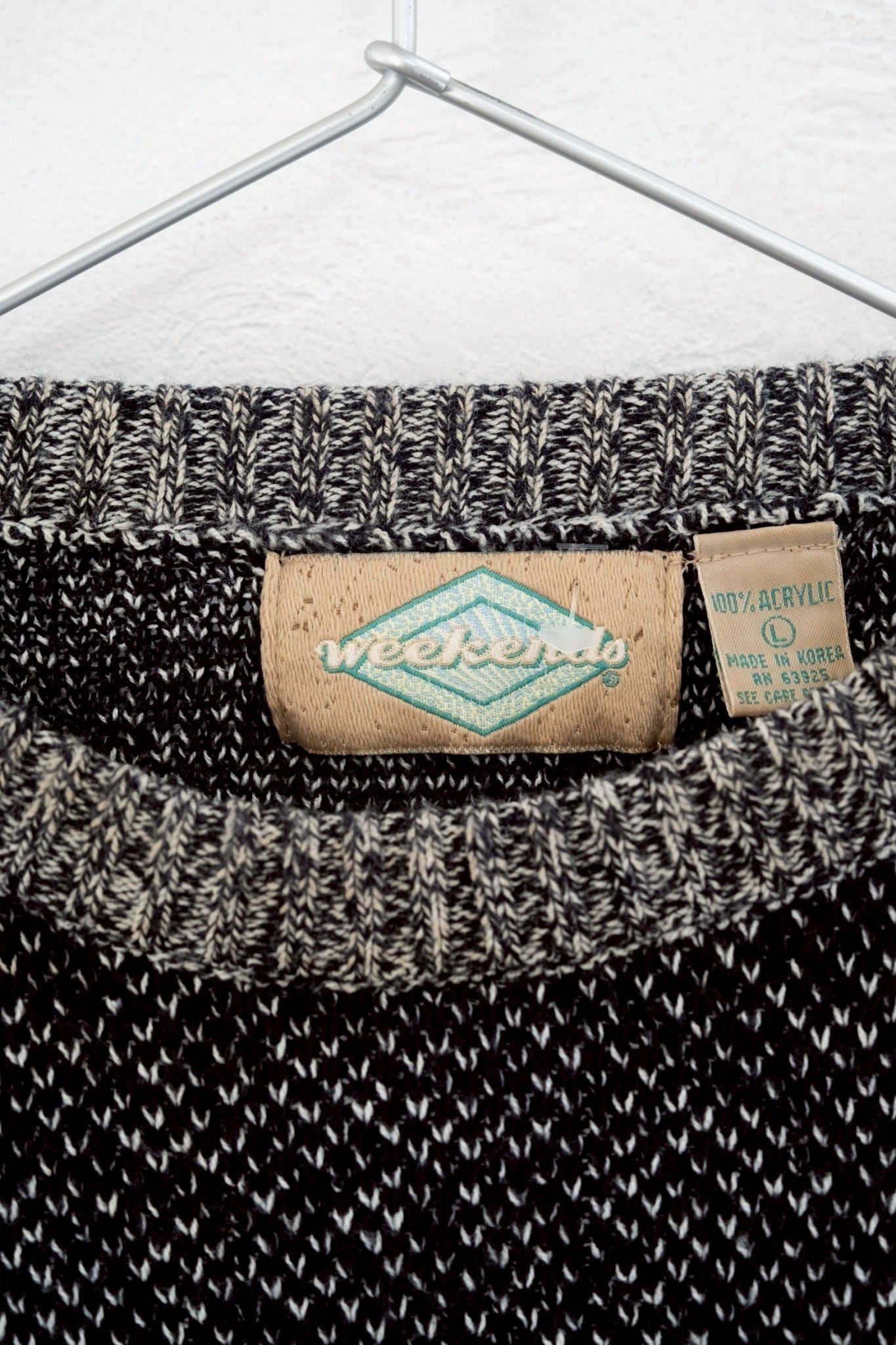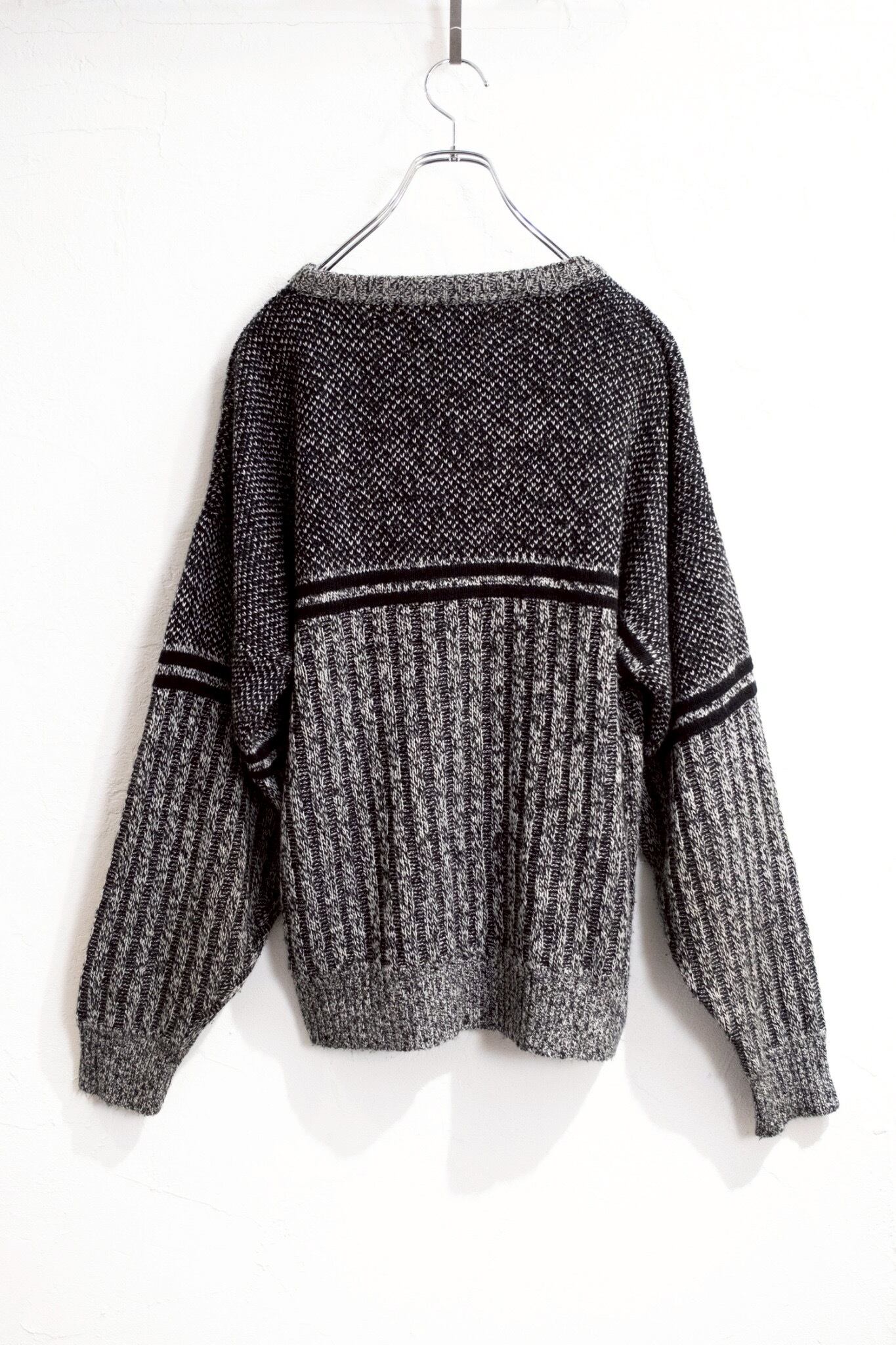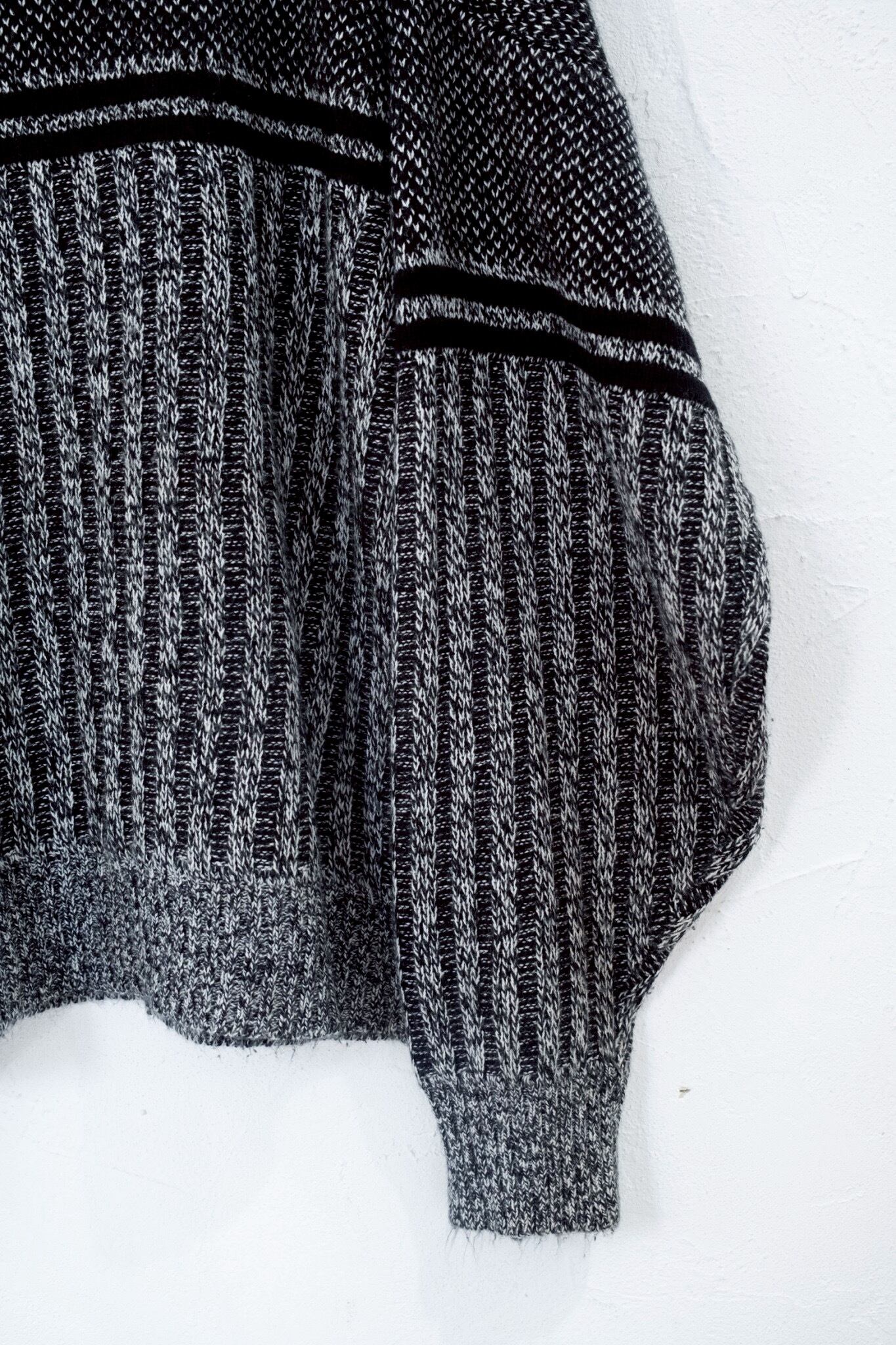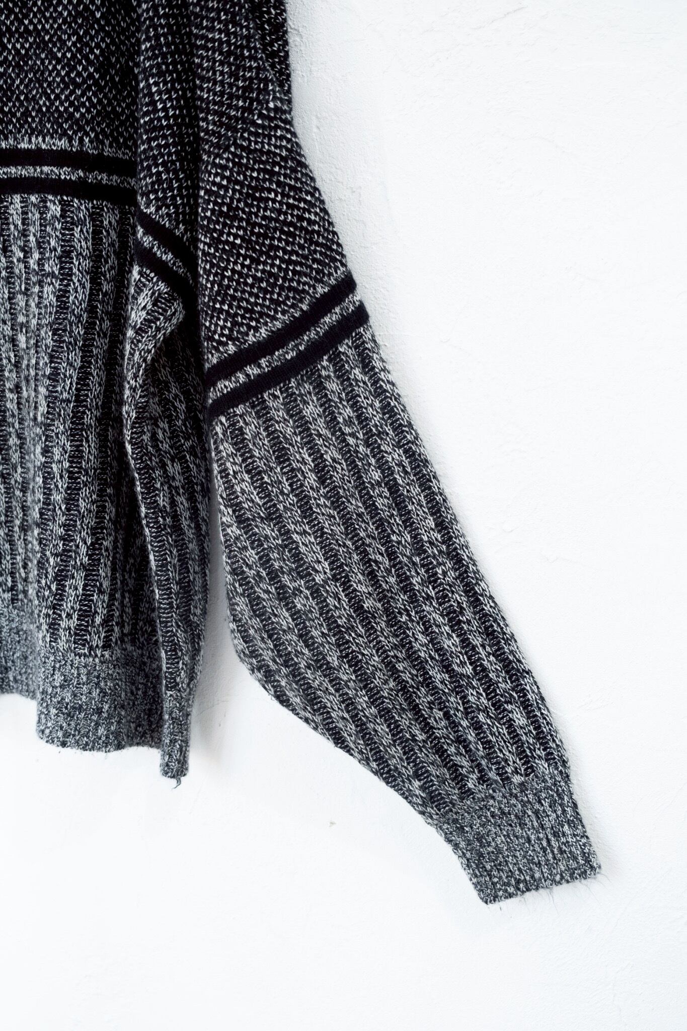 : weekendo : ハイゲージ千鳥ストライプ柄 丸首ニット