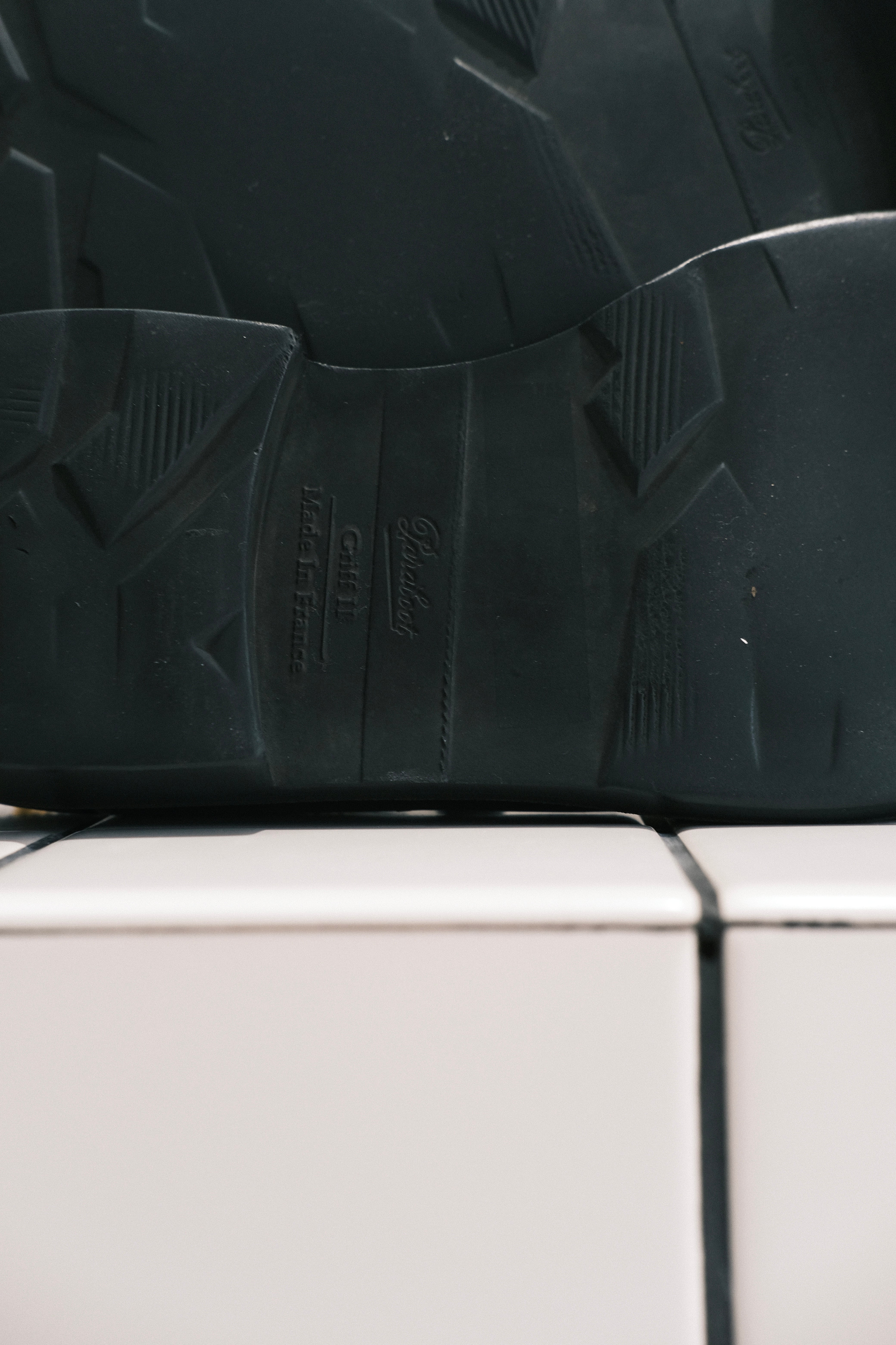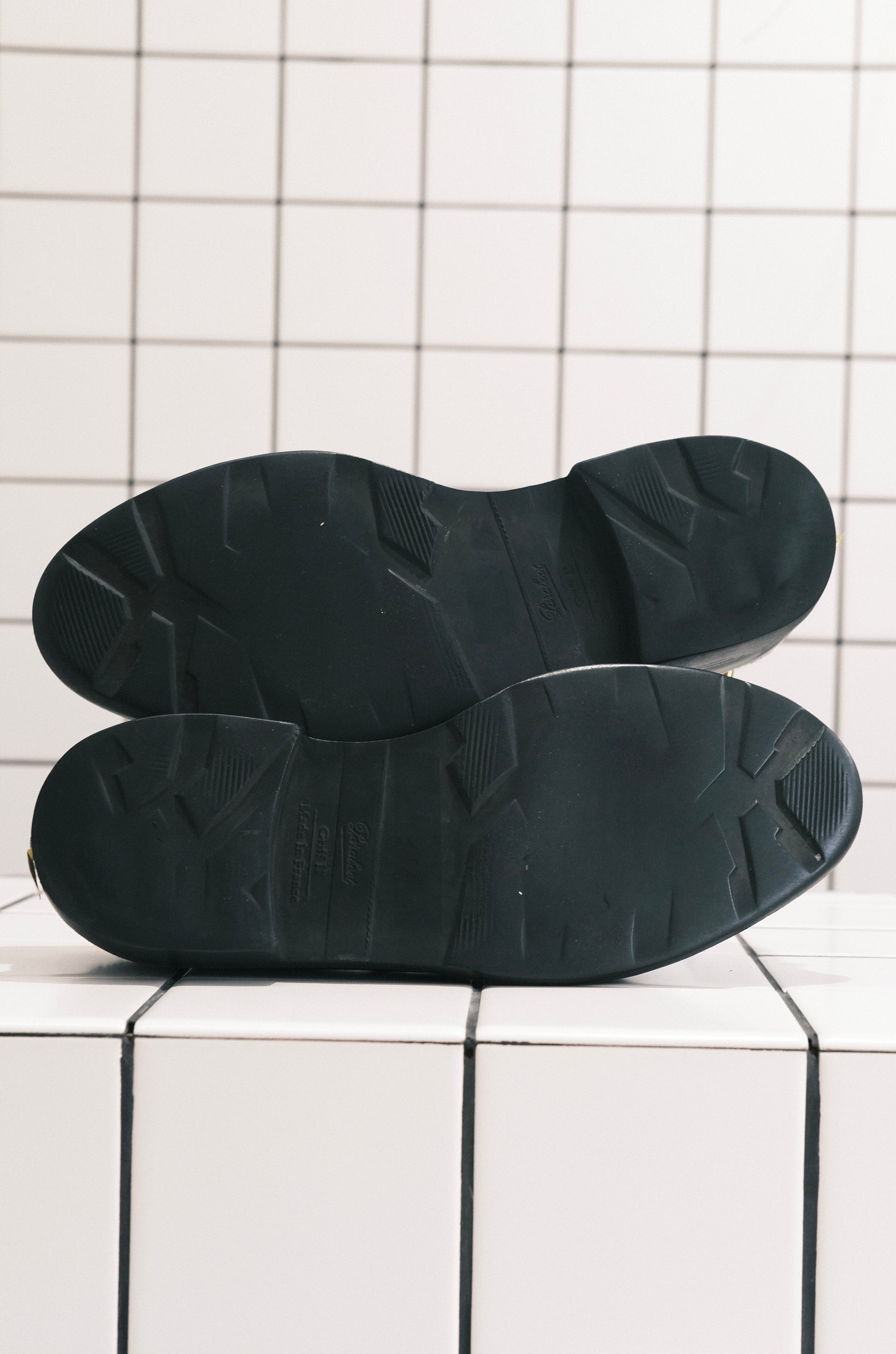 ※GRIFFⅡSOLEは、ソールとヒールが一体型で「MARCHE SOLE」の無骨な部分を排除して作られたタイプです。ソール自体の厚みを薄くしエレガントに仕上げたもの。こちらも初代「GRIFFソール」より、接地面が波型縦横に配置されたギザギザのパターンに変わりよりグリップ力を高めたアップデート仕様。柔らかい履き心地と屈曲を併せ持つ万能タイプになります。