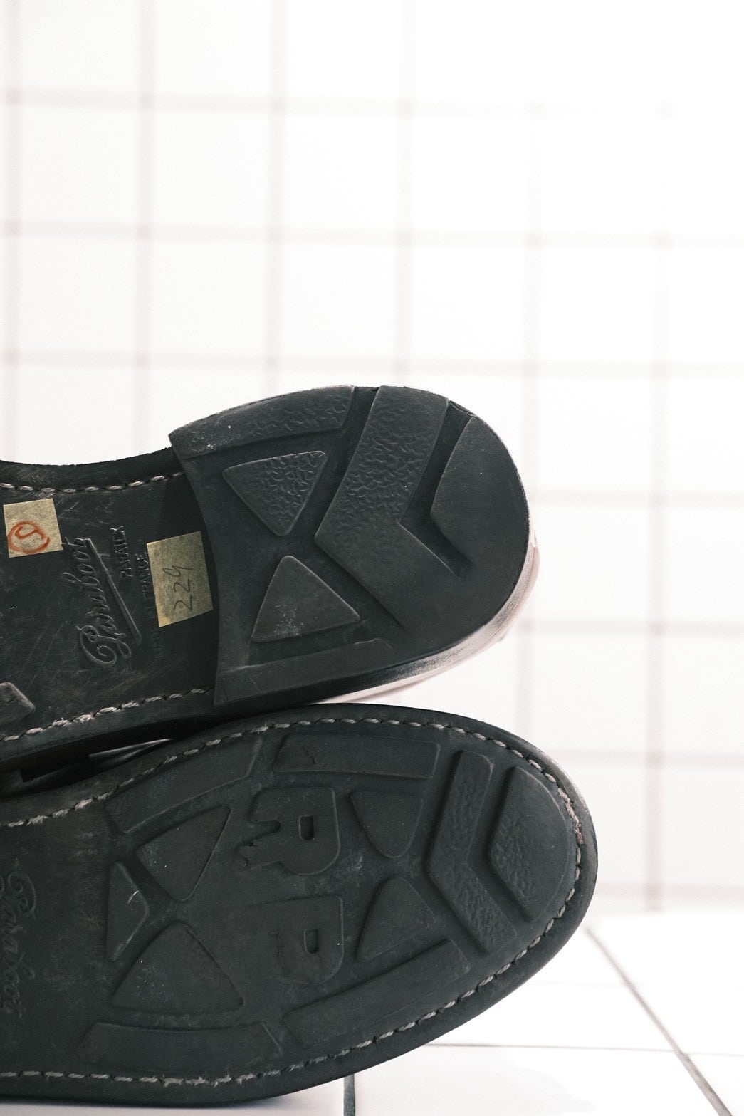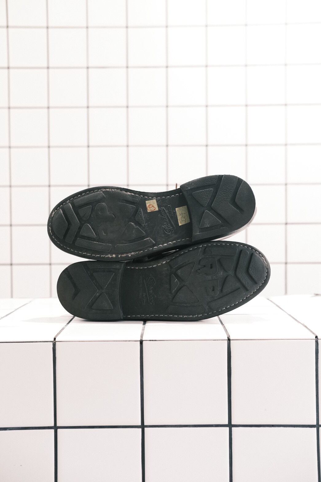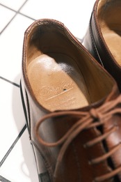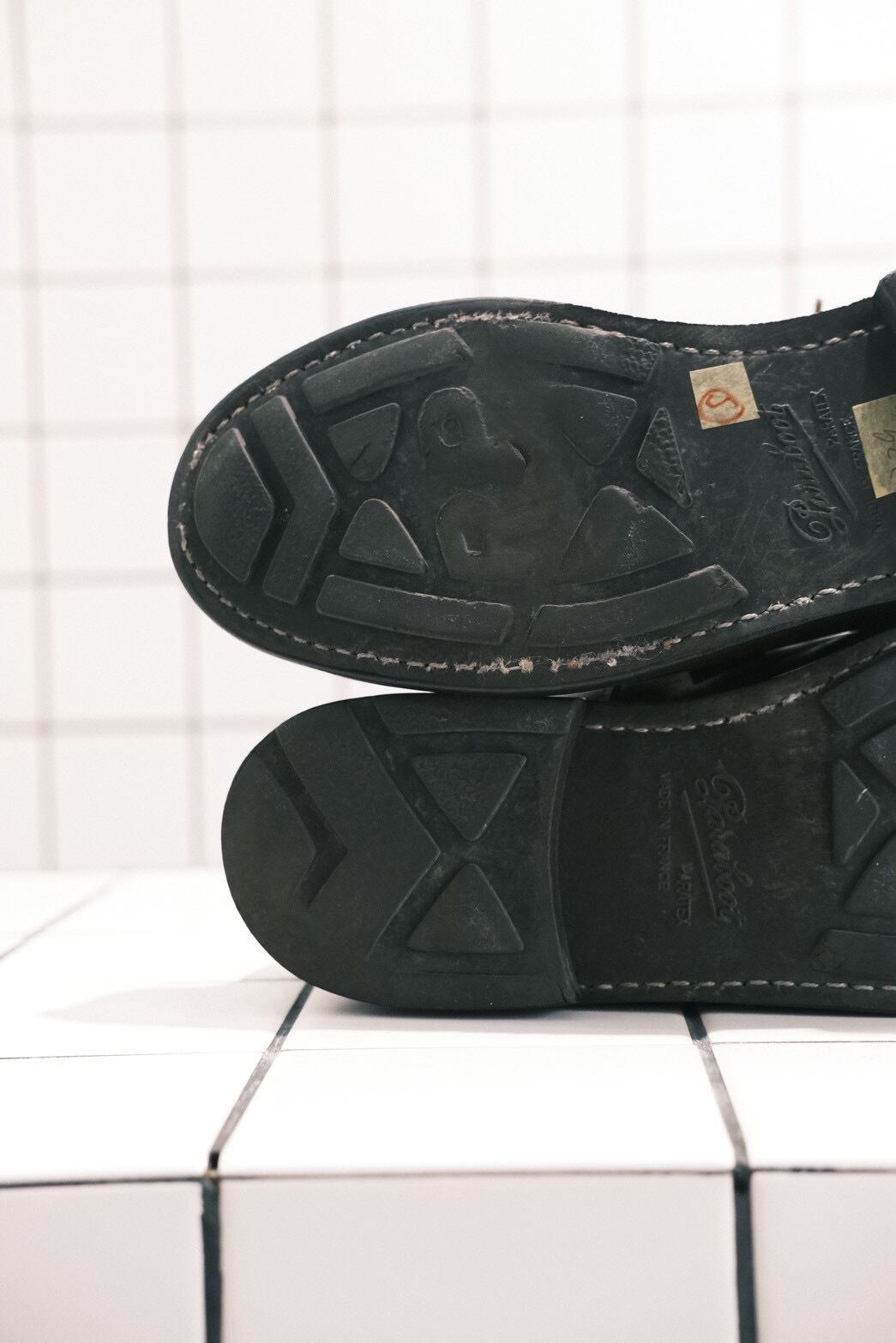 ※PARA-TEX SOLEは、ソールとヒールが分かれているタイプです。ソールの「RP」という文字は<パラブーツ>のRICHARD PONTVERT社の頭文字です。「PARATEX」は、グリップ力及びクッション性が抜群。ソール本体の厚みが1センチと厚く、ソールの裏側には空気を閉じ込めるフィンがいくつも付いています。また、セパレート式には意味があり、石畳やアスファルトの路面も歩くことを想定し、特にソールで一番減りやすいヒールを交換できるように作られています。