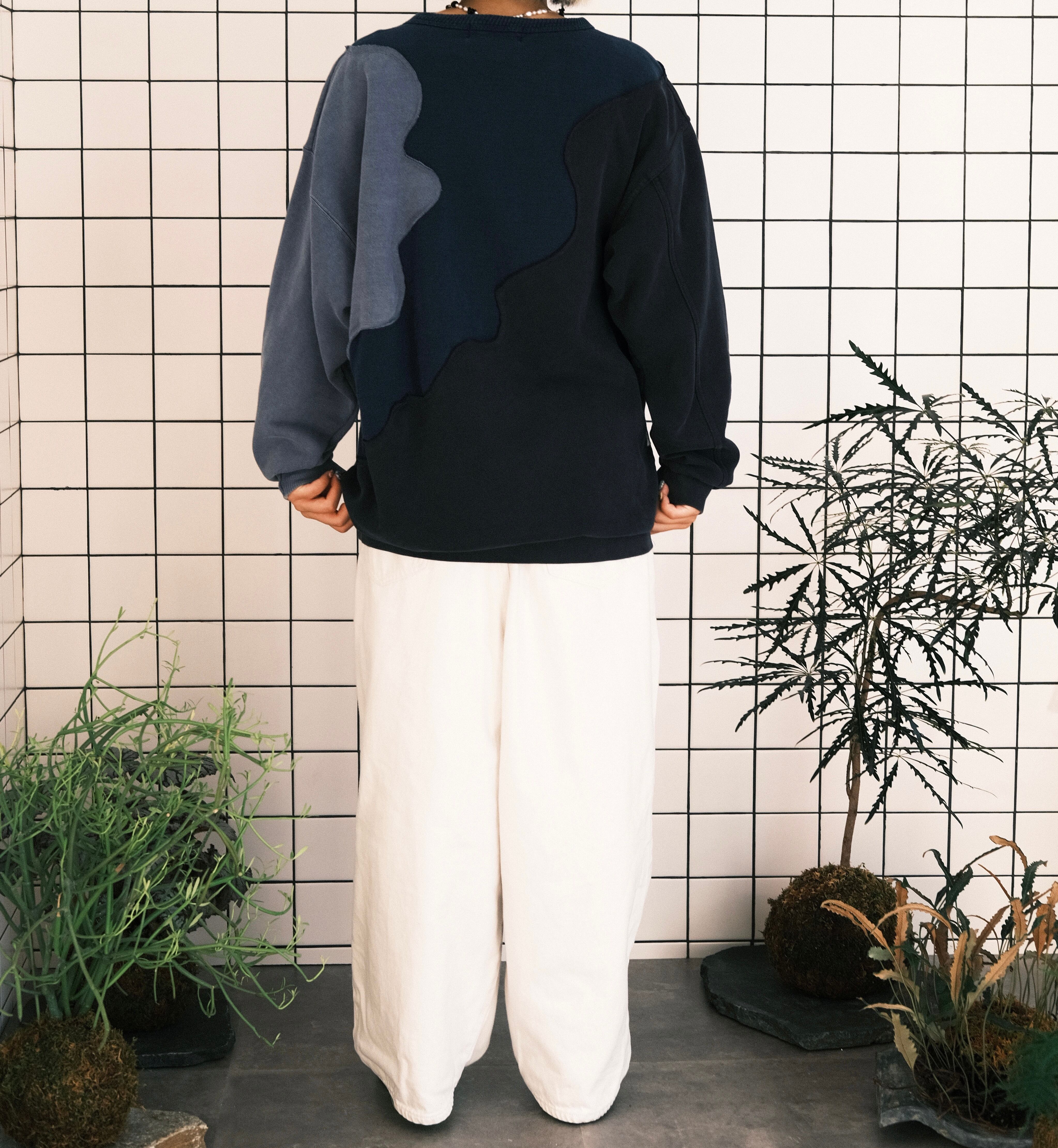 古着のスウェットを3枚使ってリメイクしており、ナミナミしたパターンを作るのにとても苦労されていました…。
