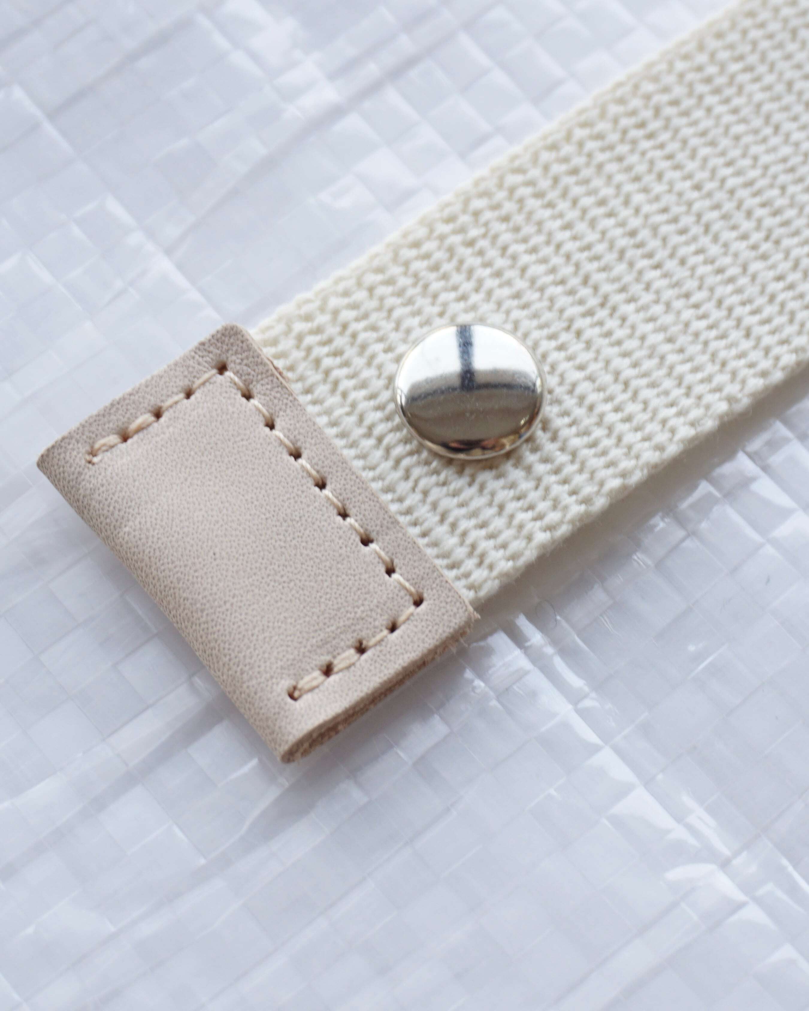 素材:ポリエチレン、ポリエステル、牛革